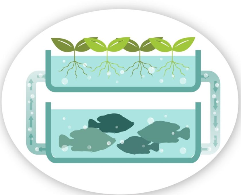 As the name itself explain this system, this is a semi-closed recirculating system which combines aquaculture with hydroponics. The fishes are reared in a tank and the water in which the fishes live are recirculated through the hydroponics growbed which are filled with high porous materials and plants. Beneficial bacteria grows on the growbed and it converts the fish excreta into rich manure which is used by the plants for its growth. Aquaponics is a good solution for the combined fish and vegetable cultivation in urban areas. This system is controlled by IoT based cloud server system.